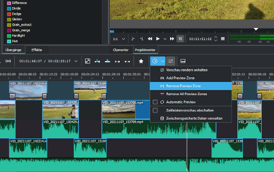 Bei Verwendung von hochauflösendem Filmmaterial oder komplexen Effekten ist manchmal keine Echtzeitwiedergabe möglich. In der Timeline-Vorschau können Sie Teile Ihrer Timeline vorrendern.